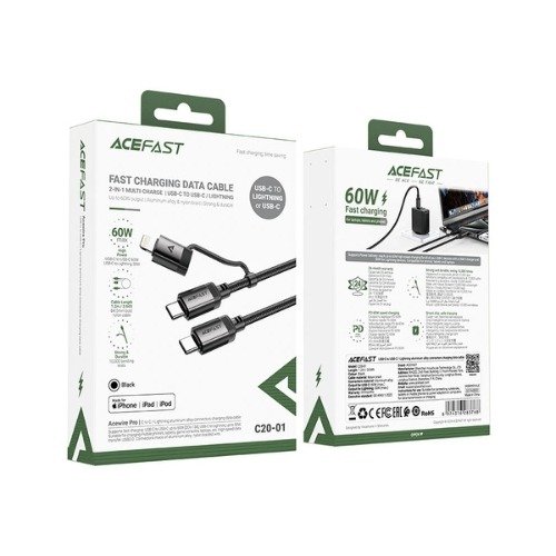 ACEFAST C20-01 USB-C to Lightning / USB-C charging data cable.