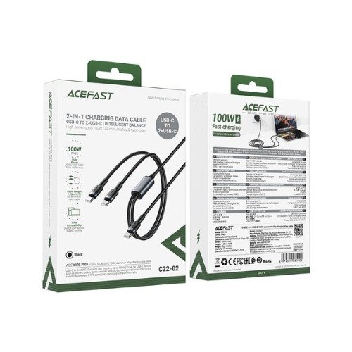 ACEFAST C22-02 100W USB-C to 2xUSB-C charging data cable.