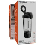 The Porodo Lifestyle Grip & Mix Protein Shaker Bottle in black is nothing less than the perfect companion for your fitness regime. With a capacity of 700mL, this bottle allows you to store your protein shakes and drinks comfortably. The motor of the shaker runs at a speed of 7500RPM, which makes the mixing very smooth and quick, thus yielding perfectly blended shakes every time. The durable battery of 600mAh gives an option of up to 30 days of usage on a single charge. The Type-C charging interface offers fast charging in just 2 hours. The shaker made from BPA-free PP and Tritan materials is not only strong but also health-safe. In addition, the shaker is supplied with a magnetic phone holder which permits you to keep your phone nearby during the time you breathe mixing your drinks. The active portable lifestyle can still count on the Porodo Lifestyle Protein Shaker Bottle for ease, strength, and dependability, whether you go to the gym or just take a short excursion.