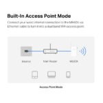 • Built-In Access Point Mode – Works as RE mode and AP mode.